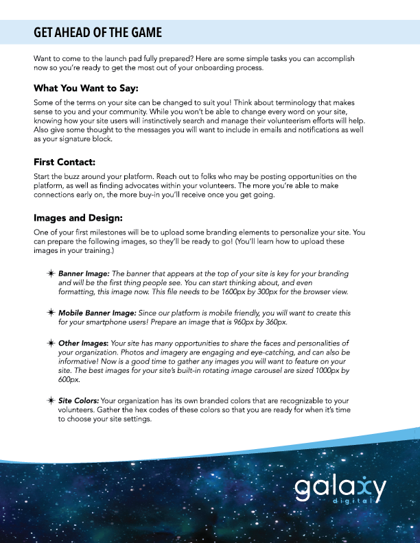 A selection of software onboarding documents that I designed for Galaxy Digital, a software company based in Asheville, NC